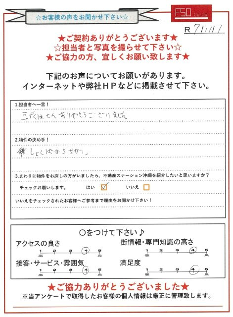 不動産ステーション沖縄TOP > お客様の声一覧 > T様