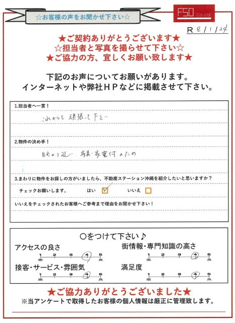 不動産ステーション沖縄TOP > お客様の声一覧 > F様